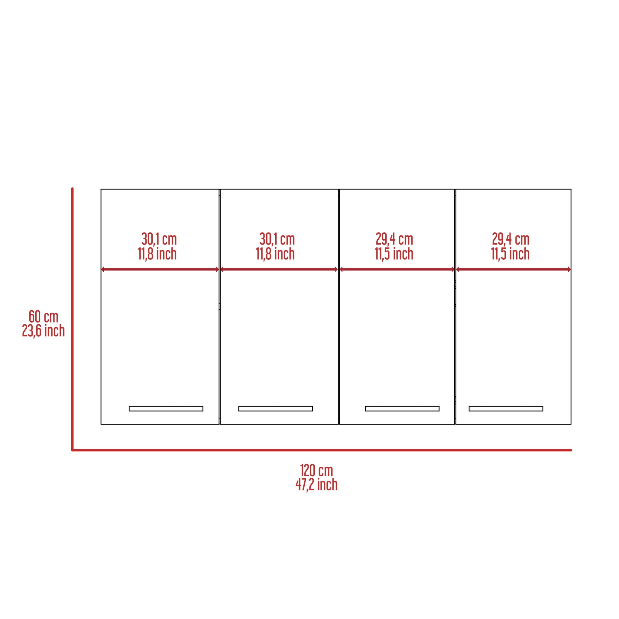 Wall Cabinet Four Doors, With Two Internal Shelves And Internal Plate And Glass Organizer - White
