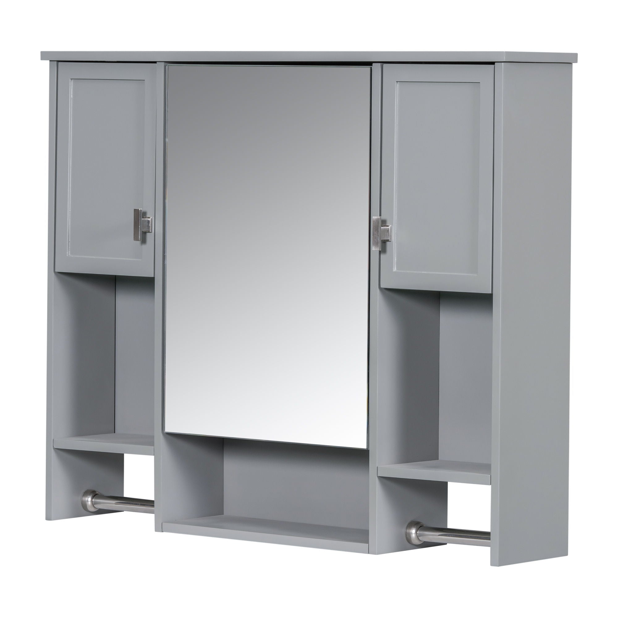 Wall Mounted Bathroom Cabinet With Mirror And Towel Bar, Storage Cabinet With 3 Doors - Gray