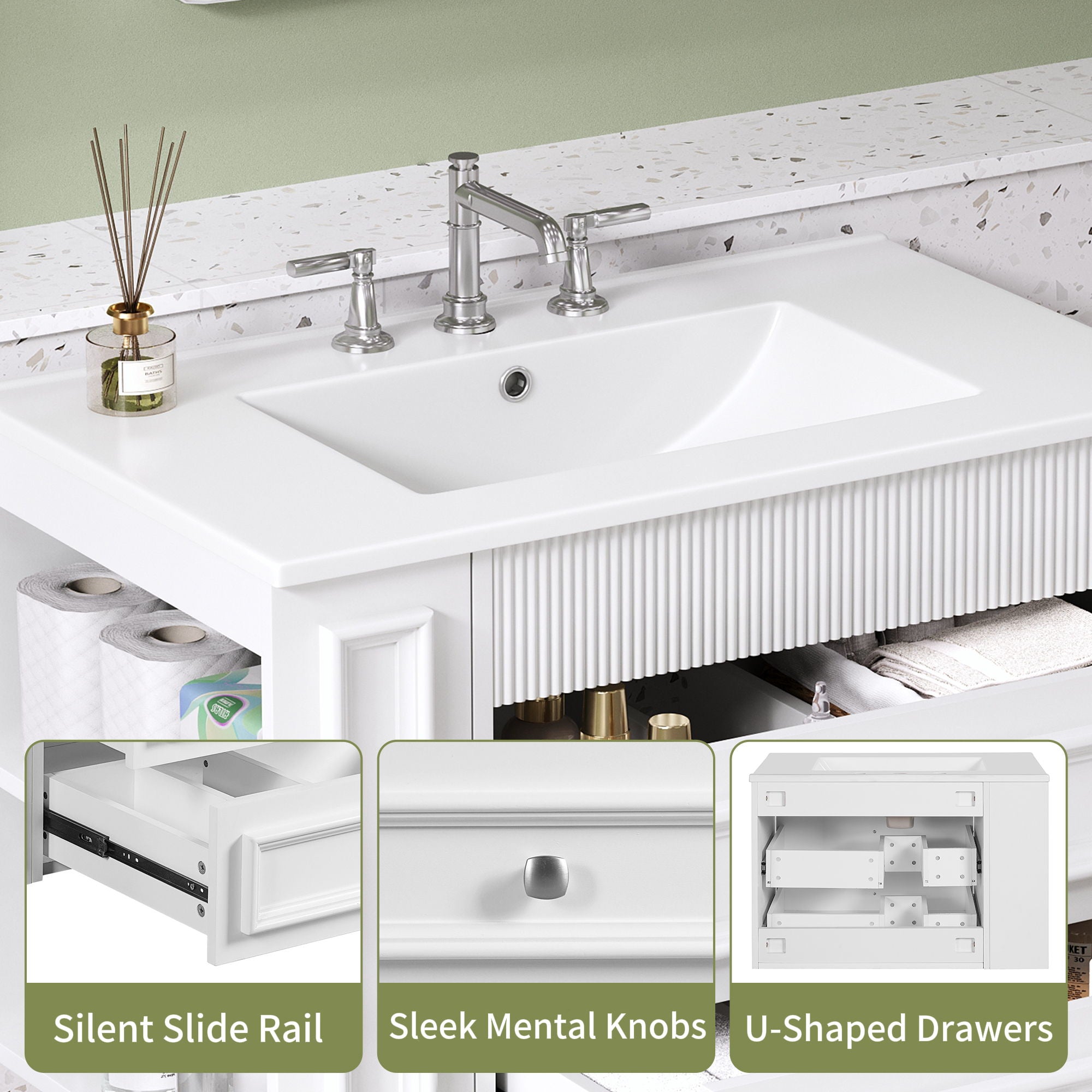 30 Inch Floating Design: Space-efficient wall-mounted cabinet maximizes floor area while offering ample storage and a streamlined appearance. Ample Storage...