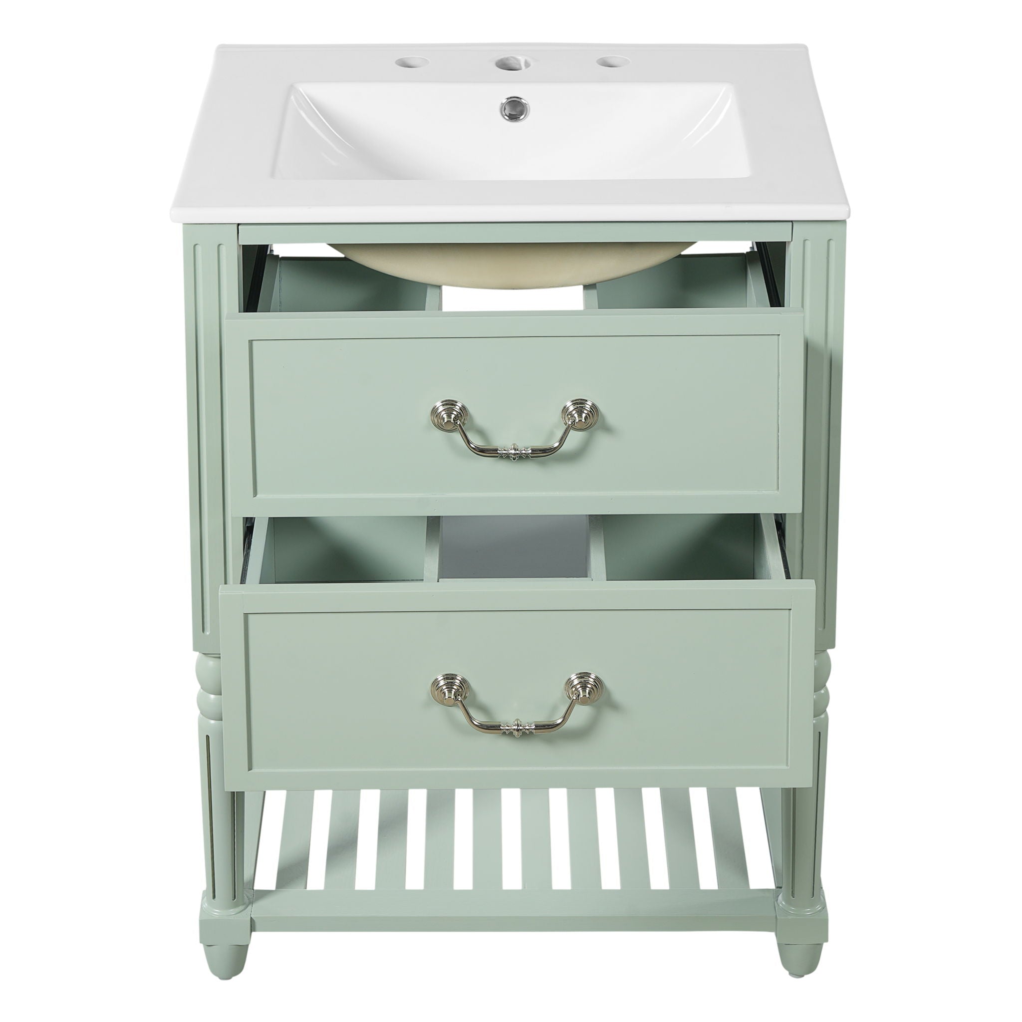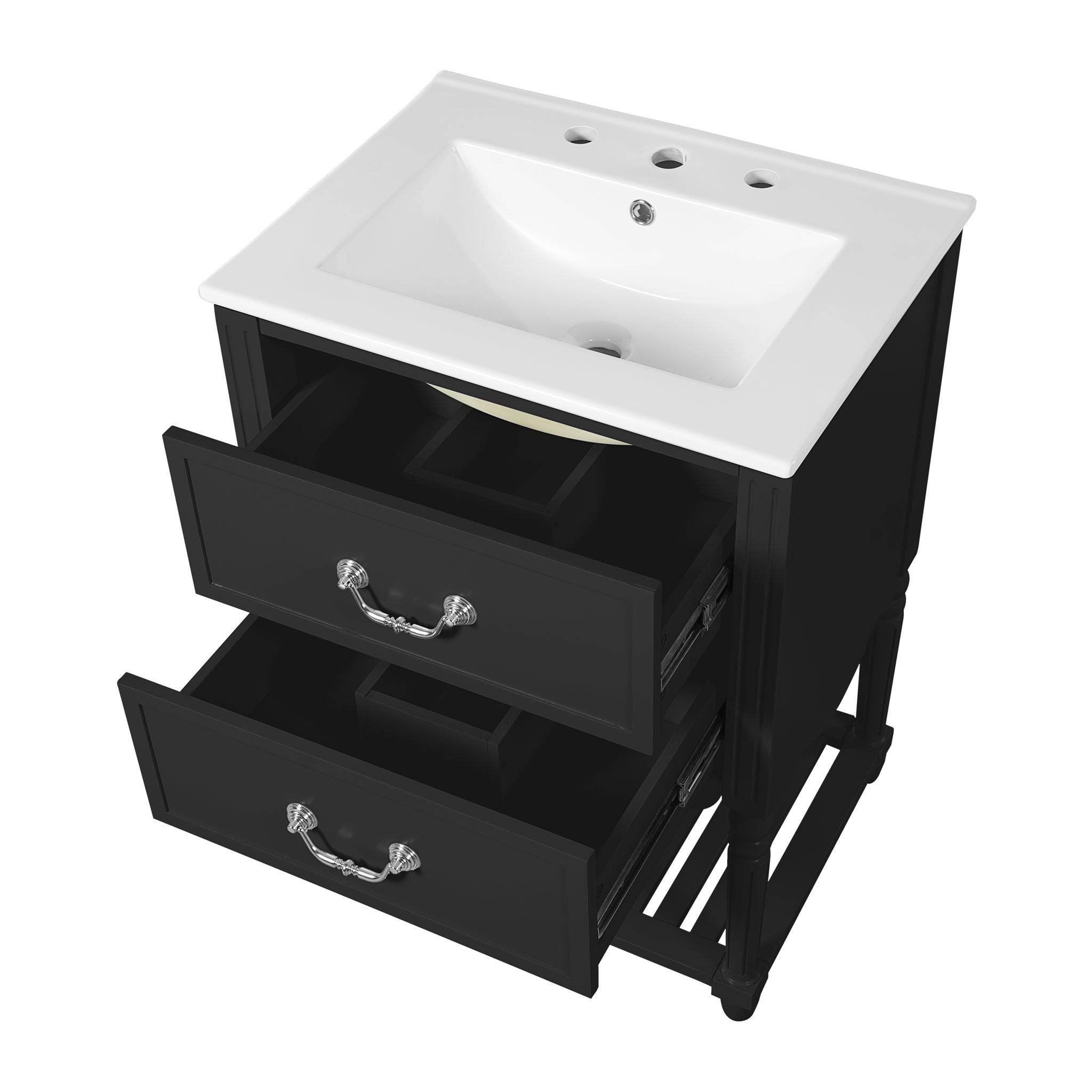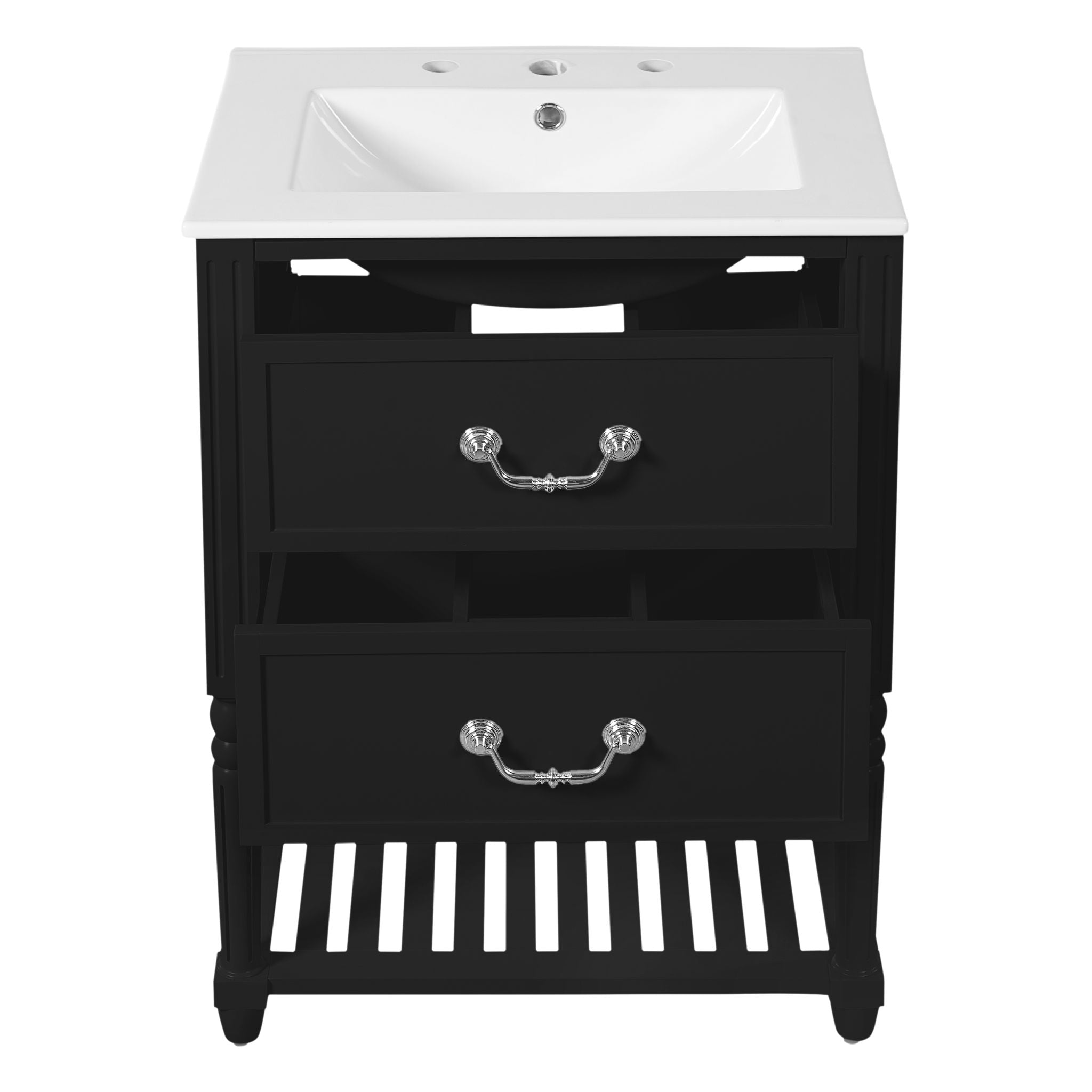 Wave Design Bathroom Vanity With Sink, 2 Drawers And Open Shelf